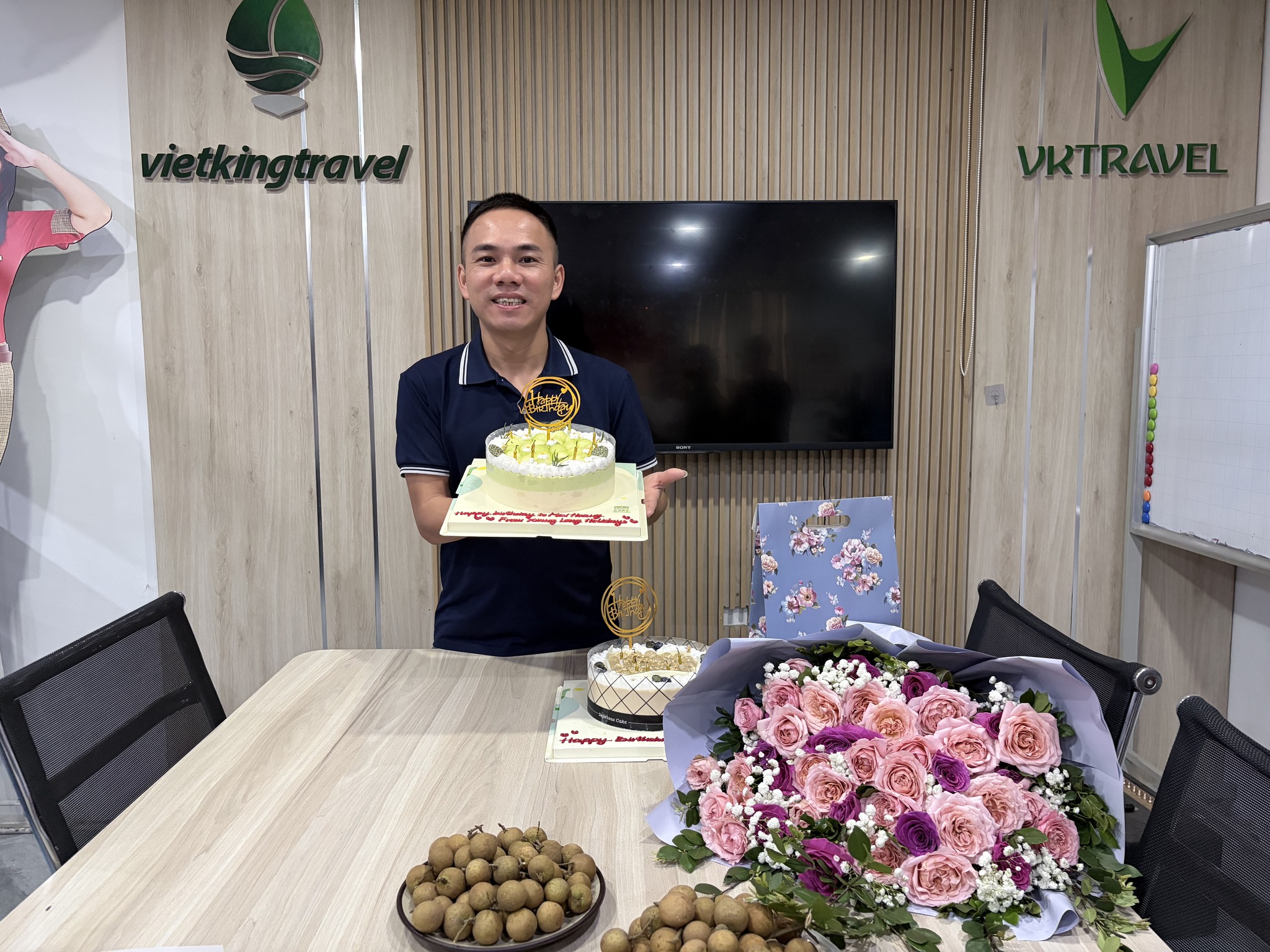 Ngày 10/04 vừa qua là một cột mốc rất đặc biệt – ngày sinh nhật của Sếp Mai Tiến Tần. Tuy nhiên, trong không khí rực lửa và guồng quay hối hả của chiến dịch Hội chợ Du lịch Quốc tế VITM 2026, toàn thể anh chị em Vietkingtravel đã mải mê “chiến đấu” nên chưa kịp tổ chức một bữa tiệc chung vui trọn vẹn đúng ngày cùng Sếp.